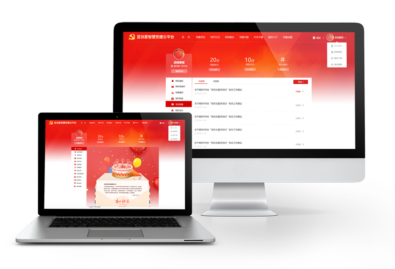 党建宣传平台是党建工作的门户,在PC端、APP端、微信端等各种终端进行展示的功能。便于领导对党建工作以及人员进行系统的一体化管理。